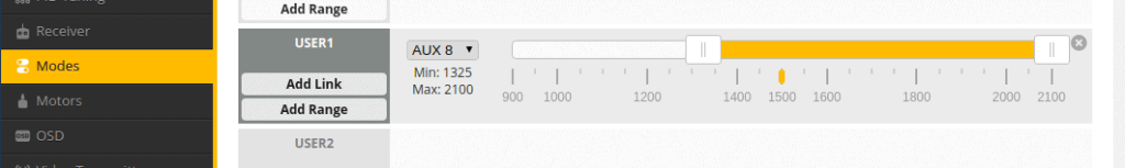 One problem with HD system is that they can get very hot when on the ground due to the lack of cooling from air flow. To prevent this, the RADIX 2 HD has a built-in “HD system pit switch” that allows you power off the HD system completely by turning off the 9 V regulator using a switch on your RC transmitter. To do so, configure the “USER1” switch in Betaflight / INAV as shown below.